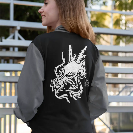 Bruce Lee 85th Anniversary Dragon Varsity Jacket - Black/Grey